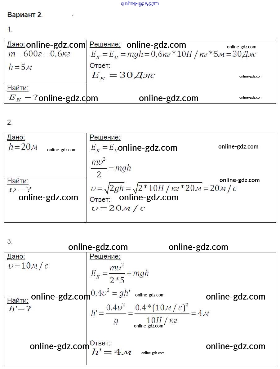 Готовые домашние задания по Физике за 9 класс Контрольные и самостоятельные работы Громцева УМК 2017 - СР-28. Варианты Самостоятельные работы 2