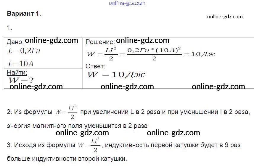 Готовые домашние задания по Физике за 9 класс Контрольные и самостоятельные работы Громцева УМК 2017 - СР-45. Варианты Самостоятельные работы 1