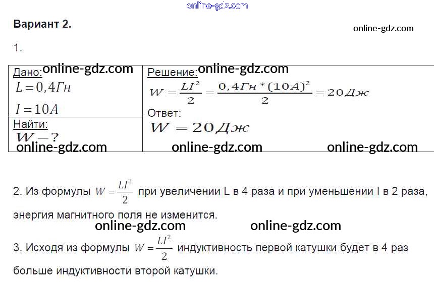 Готовые домашние задания по Физике за 9 класс Контрольные и самостоятельные работы Громцева УМК 2017 - СР-45. Варианты Самостоятельные работы 2