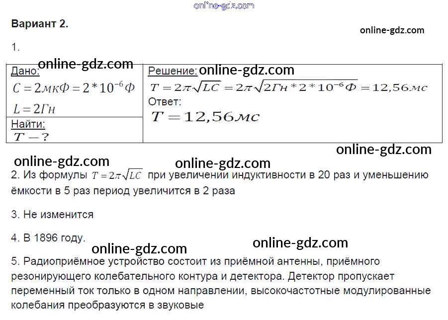 Готовые домашние задания по Физике за 9 класс Контрольные и самостоятельные работы Громцева УМК 2017 - СР-49. Варианты Самостоятельные работы 2