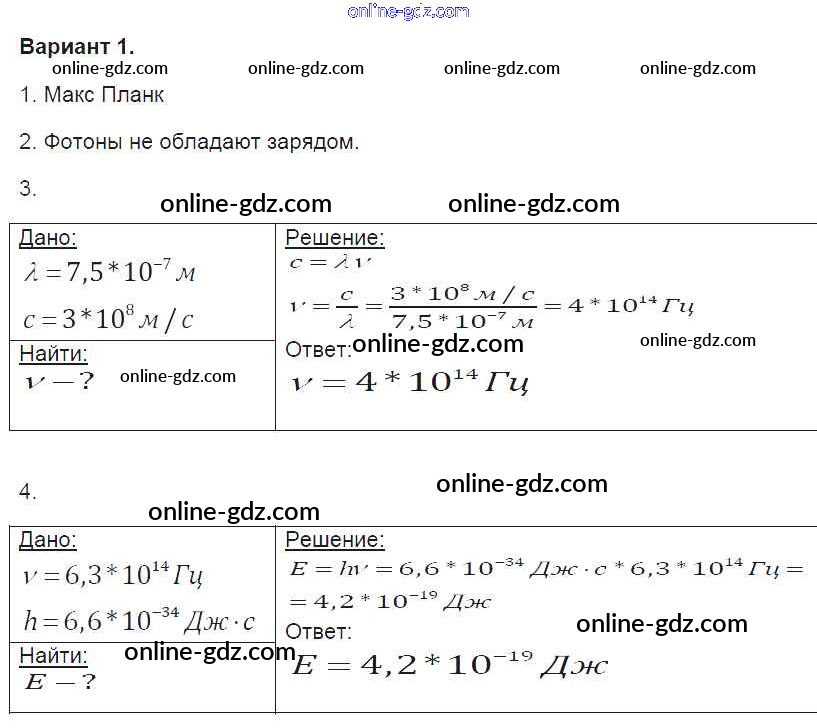Готовые домашние задания по Физике за 9 класс Контрольные и самостоятельные работы Громцева УМК 2017 - СР-50. Варианты Самостоятельные работы 1