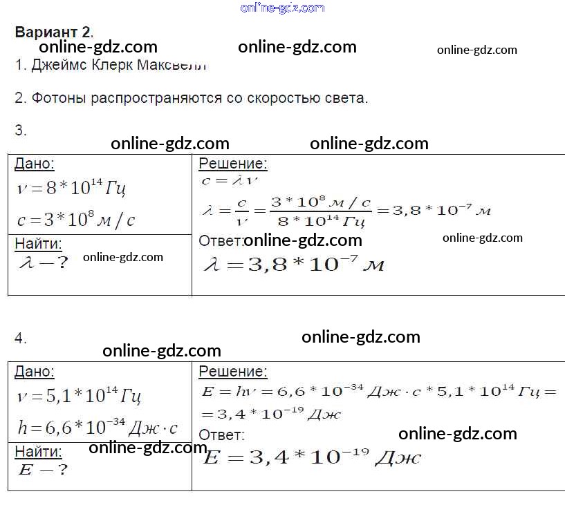 Готовые домашние задания по Физике за 9 класс Контрольные и самостоятельные работы Громцева УМК 2017 - СР-50. Варианты Самостоятельные работы 2