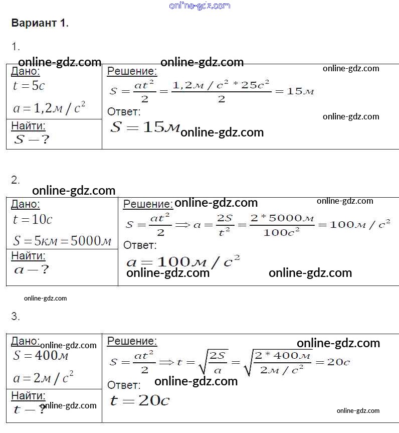 Готовые домашние задания по Физике за 9 класс Контрольные и самостоятельные работы Громцева УМК 2017 - СР-8. Варианты Самостоятельные работы 1