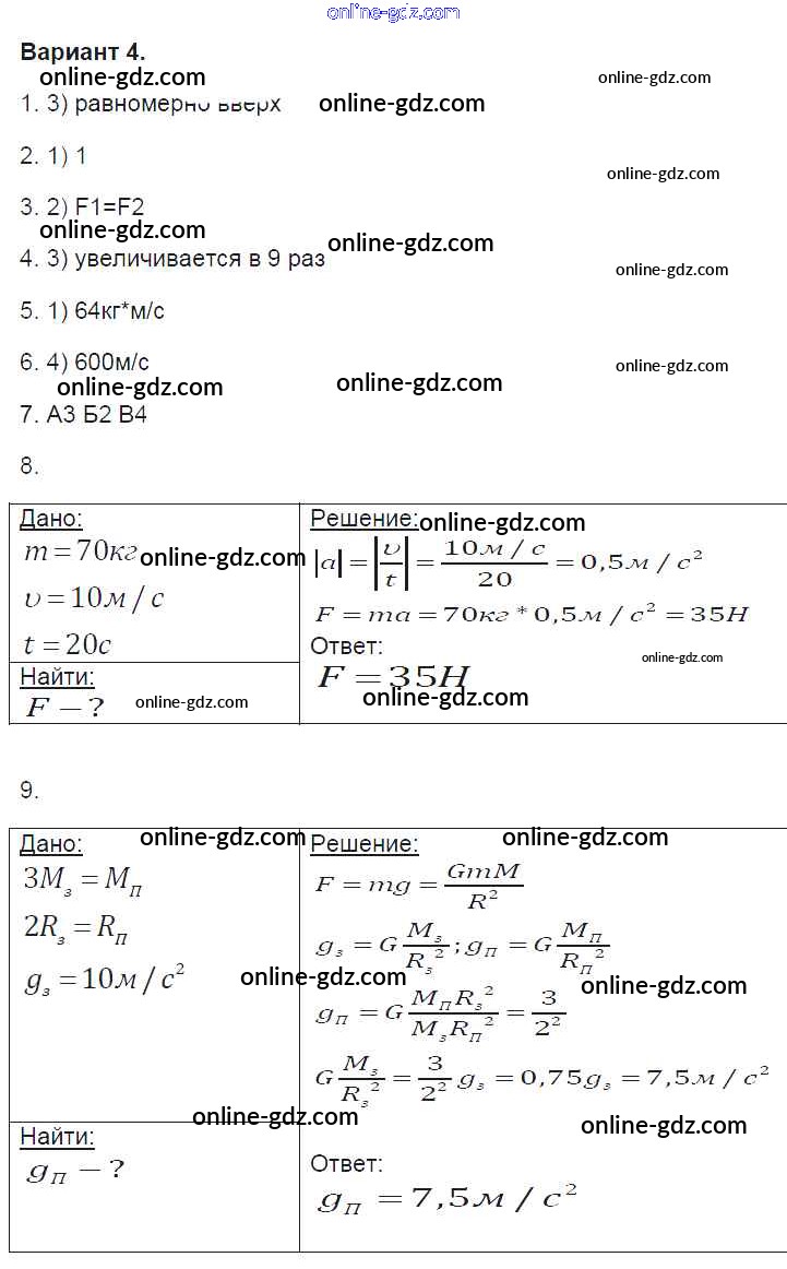 Готовые домашние задания по Физике за 9 класс Контрольные и самостоятельные работы Громцева УМК 2017 - 1. Варианты Глава 1 4
