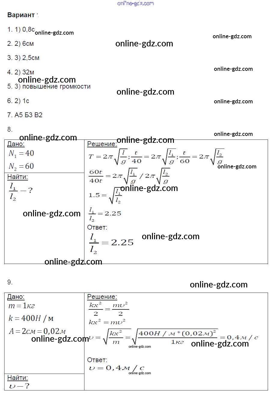 Готовые домашние задания по Физике за 9 класс Контрольные и самостоятельные работы Громцева УМК 2017 - Глава 2. Варианты Контрольные работы 1