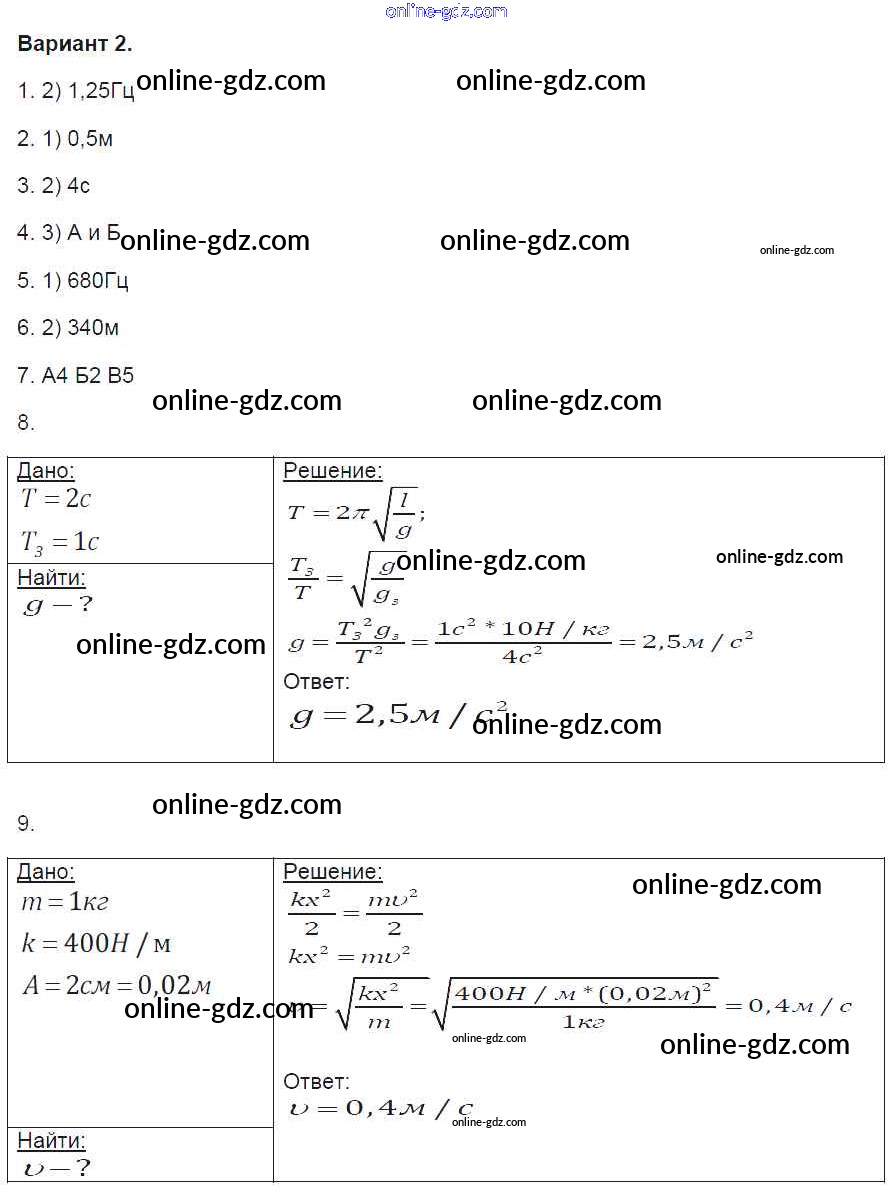 Готовые домашние задания по Физике за 9 класс Контрольные и самостоятельные работы Громцева УМК 2017 - Глава 2. Варианты Контрольные работы 2