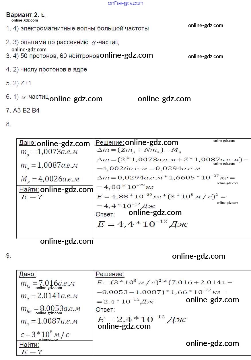 Готовые домашние задания по Физике за 9 класс Контрольные и самостоятельные работы Громцева УМК 2017 - Глава 4. Варианты Контрольные работы 2