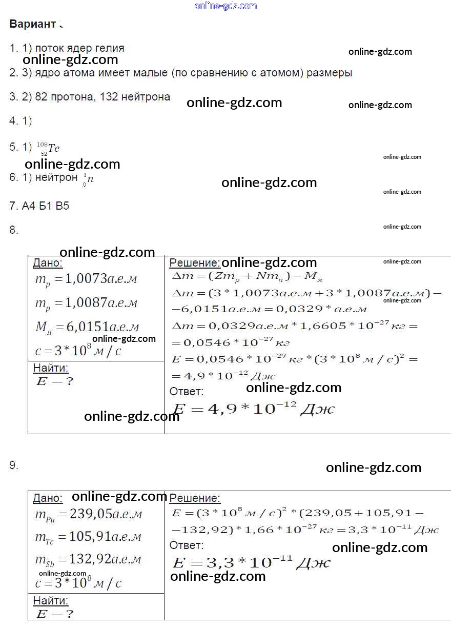 Готовые домашние задания по Физике за 9 класс Контрольные и самостоятельные работы Громцева УМК 2017 - Глава 4. Варианты Контрольные работы 3