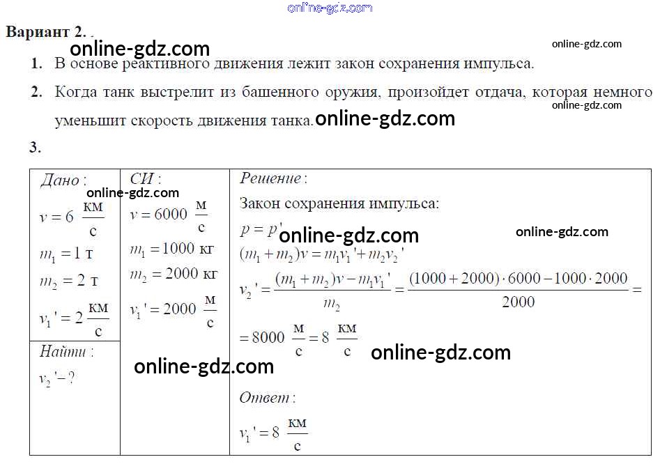 Готовые домашние задания по Физике за 9 класс Самостоятельные и контрольные работы Марон УМК 2018 - СР-21. Варианты Самостоятельные работы 2
