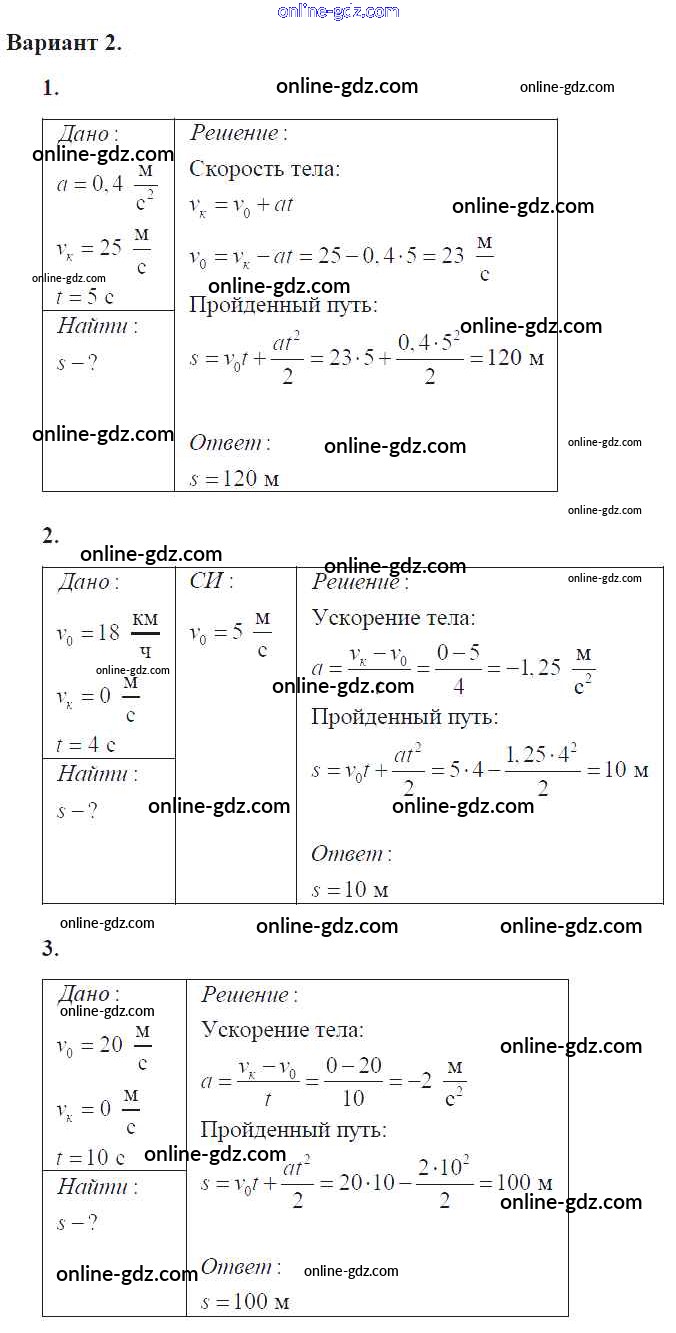 Готовые домашние задания по Физике за 9 класс Самостоятельные и контрольные работы Марон УМК 2018 - СР-7. Варианты Самостоятельные работы 2