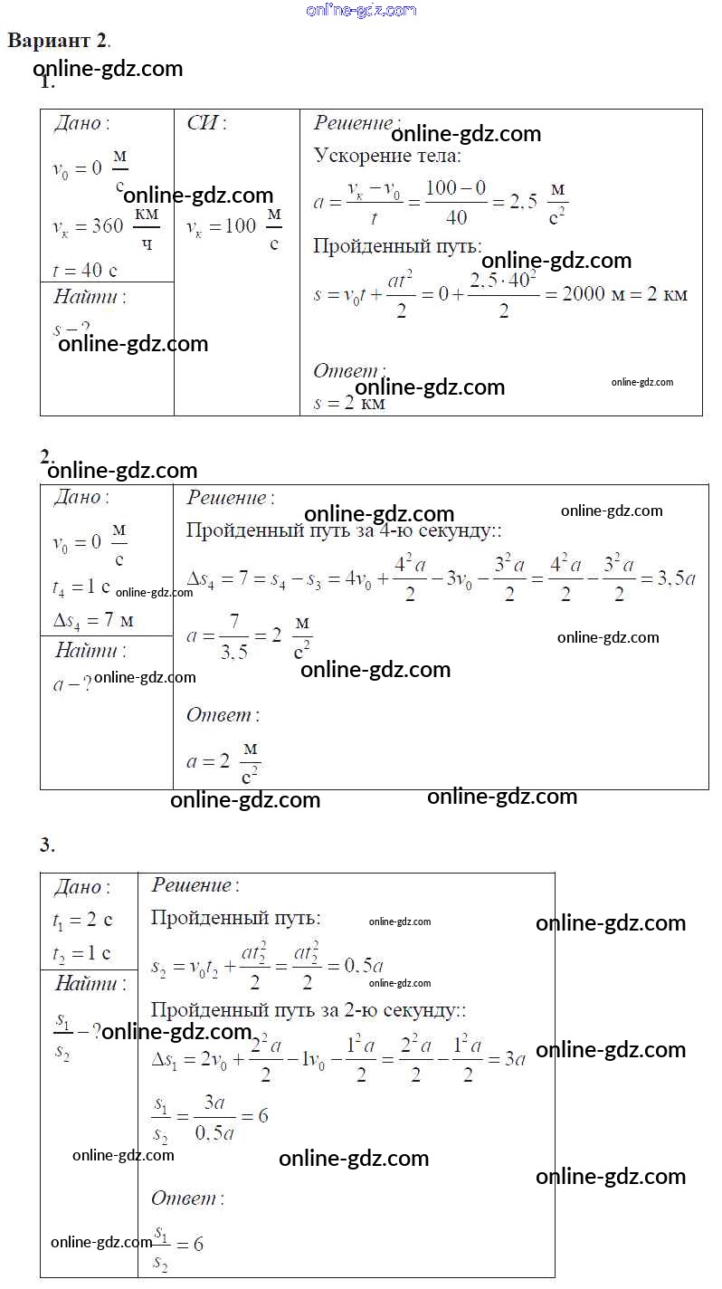 Готовые домашние задания по Физике за 9 класс Самостоятельные и контрольные работы Марон УМК 2018 - СР-8. Варианты Самостоятельные работы 2