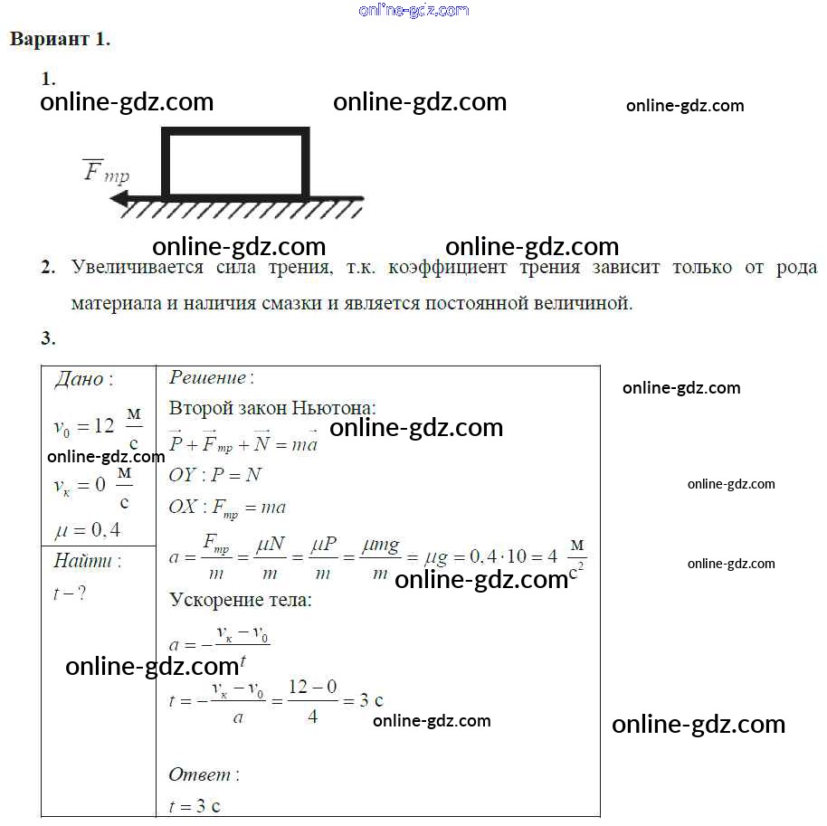 Готовые домашние задания по Физике за 9 класс Самостоятельные и контрольные работы Марон УМК 2018 - СР-2. Варианты Дополнительные самостоятельные работы 1