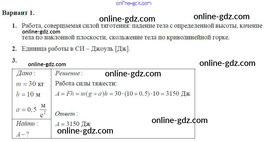 Готовые домашние задания по Физике за 9 класс Самостоятельные и контрольные работы Марон УМК 2018 - СР-3. Варианты Дополнительные самостоятельные работы 1