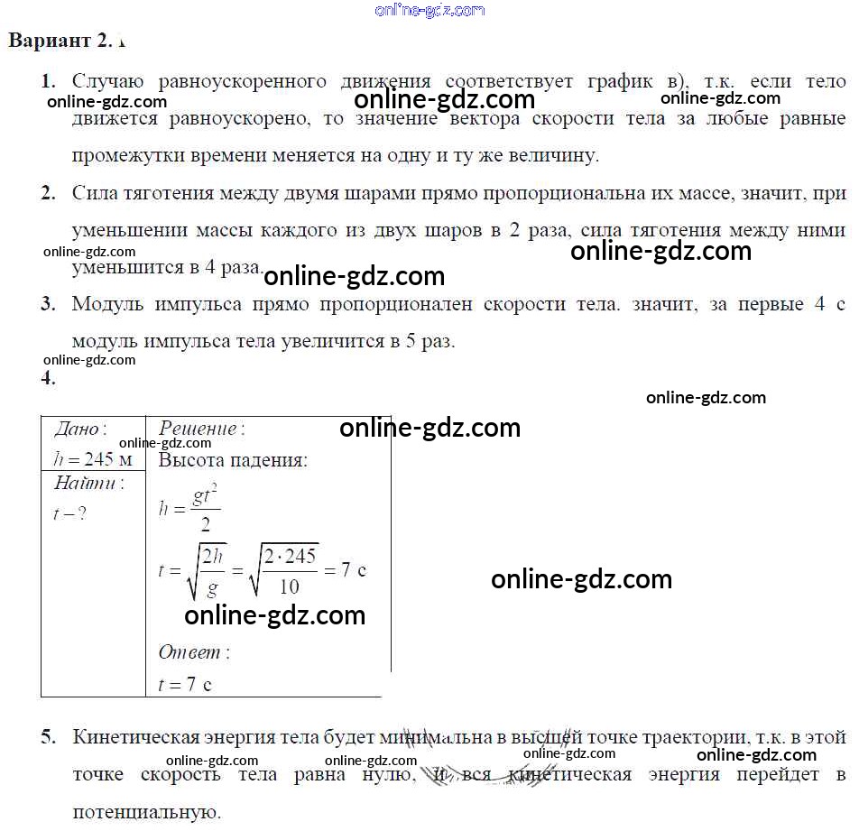 Готовые домашние задания по Физике за 9 класс Самостоятельные и контрольные работы Марон УМК 2018 - КР-1. Варианты Контрольные работы 2