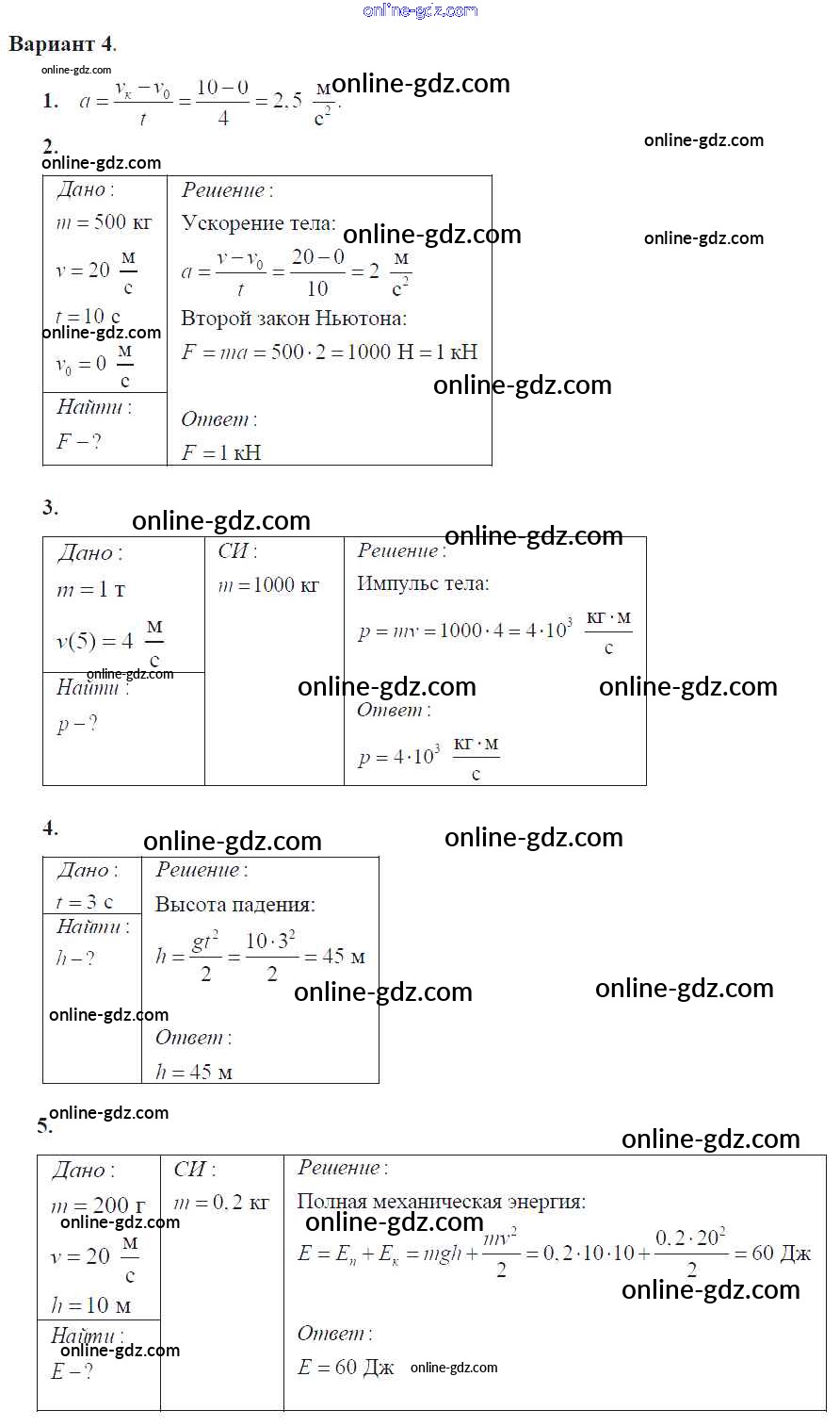 Готовые домашние задания по Физике за 9 класс Самостоятельные и контрольные работы Марон УМК 2018 - КР-1. Варианты Контрольные работы 4