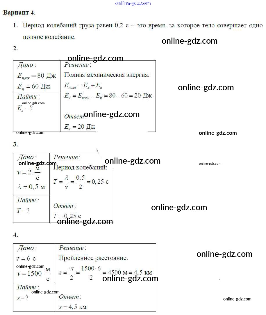 Готовые домашние задания по Физике за 9 класс Самостоятельные и контрольные работы Марон УМК 2018 - КР-2. Варианты Контрольные работы 4