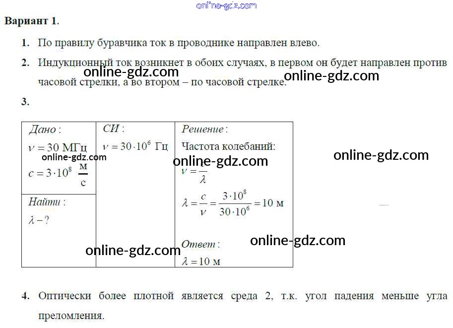 Готовые домашние задания по Физике за 9 класс Самостоятельные и контрольные работы Марон УМК 2018 - КР-3. Варианты Контрольные работы 1