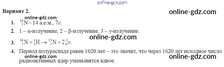 Готовые домашние задания по Физике за 9 класс Самостоятельные и контрольные работы Марон УМК 2018 - КР-4. Варианты Контрольные работы 2