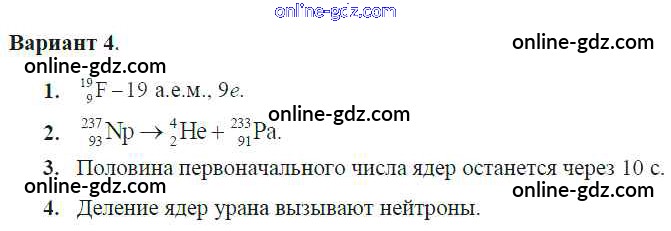 Готовые домашние задания по Физике за 9 класс Самостоятельные и контрольные работы Марон УМК 2018 - КР-4. Варианты Контрольные работы 4