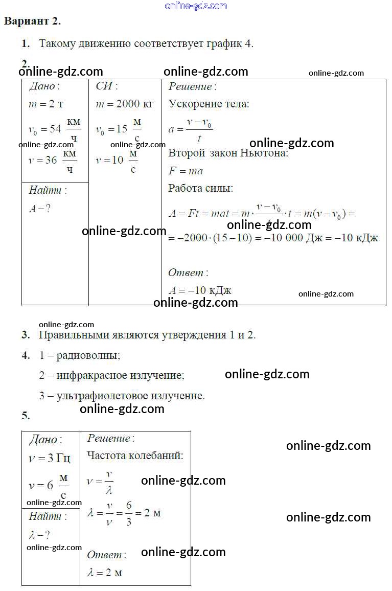 Готовые домашние задания по Физике за 9 класс Самостоятельные и контрольные работы Марон УМК 2018 - КР-6. Варианты Контрольные работы 2