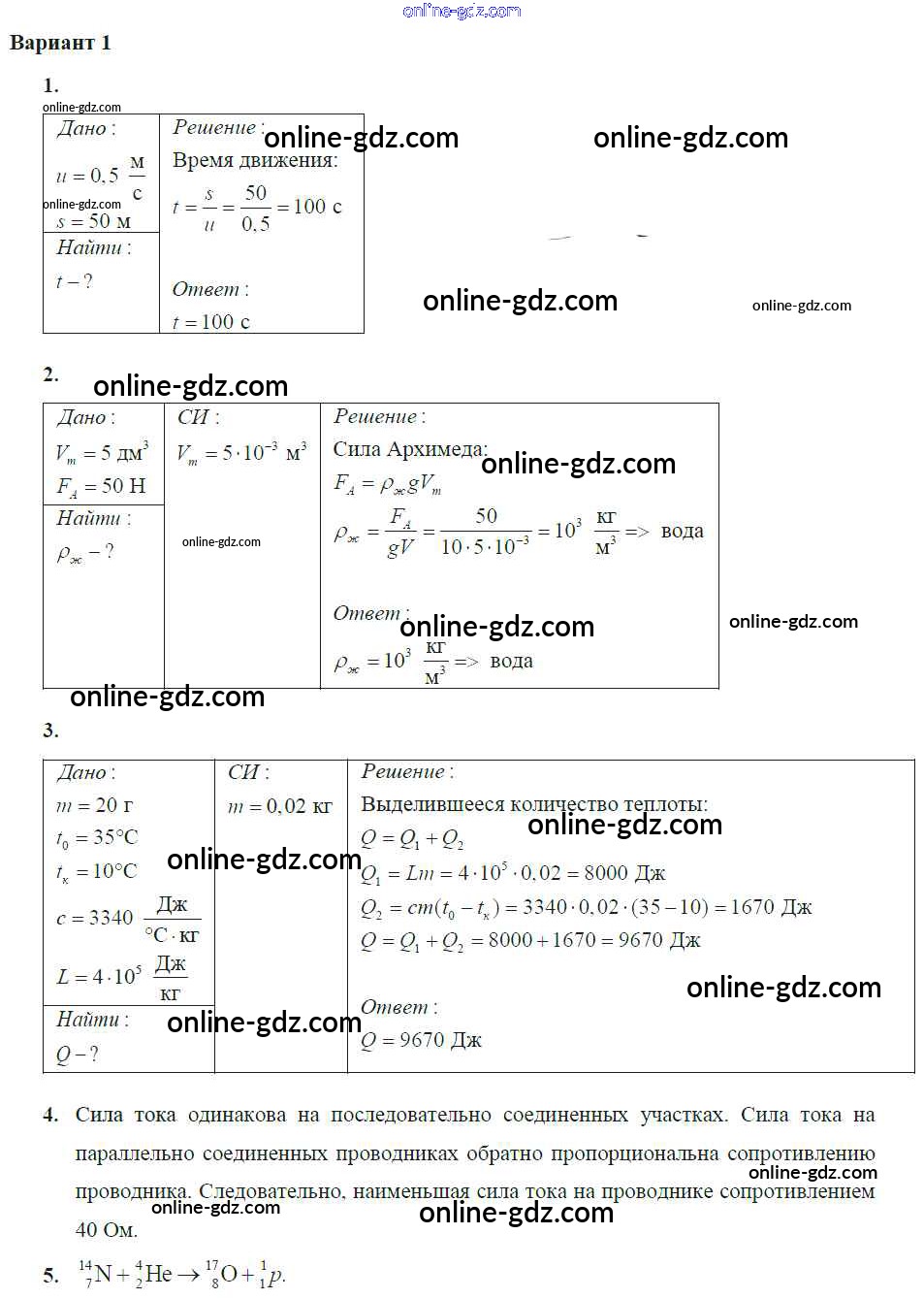 Готовые домашние задания по Физике за 9 класс Самостоятельные и контрольные работы Марон УМК 2018 - КР-7. Варианты Контрольные работы 1