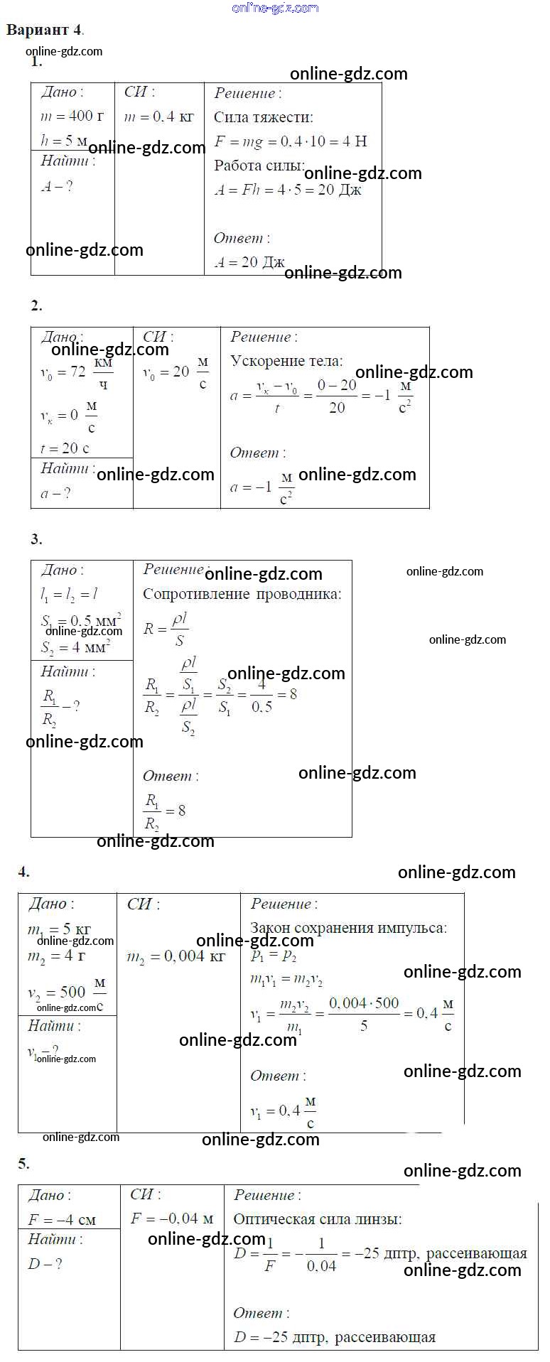 Готовые домашние задания по Физике за 9 класс Самостоятельные и контрольные работы Марон УМК 2018 - КР-7. Варианты Контрольные работы 4