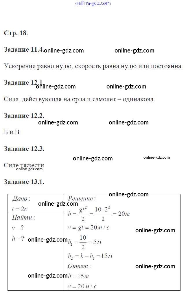 Готовые домашние задания по Физике за 9 класс Рабочая тетрадь Гутник, Власова УМК 2016 - Страницы 18