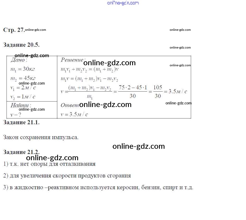 Готовые домашние задания по Физике за 9 класс Рабочая тетрадь Гутник, Власова УМК 2016 - Страницы 27