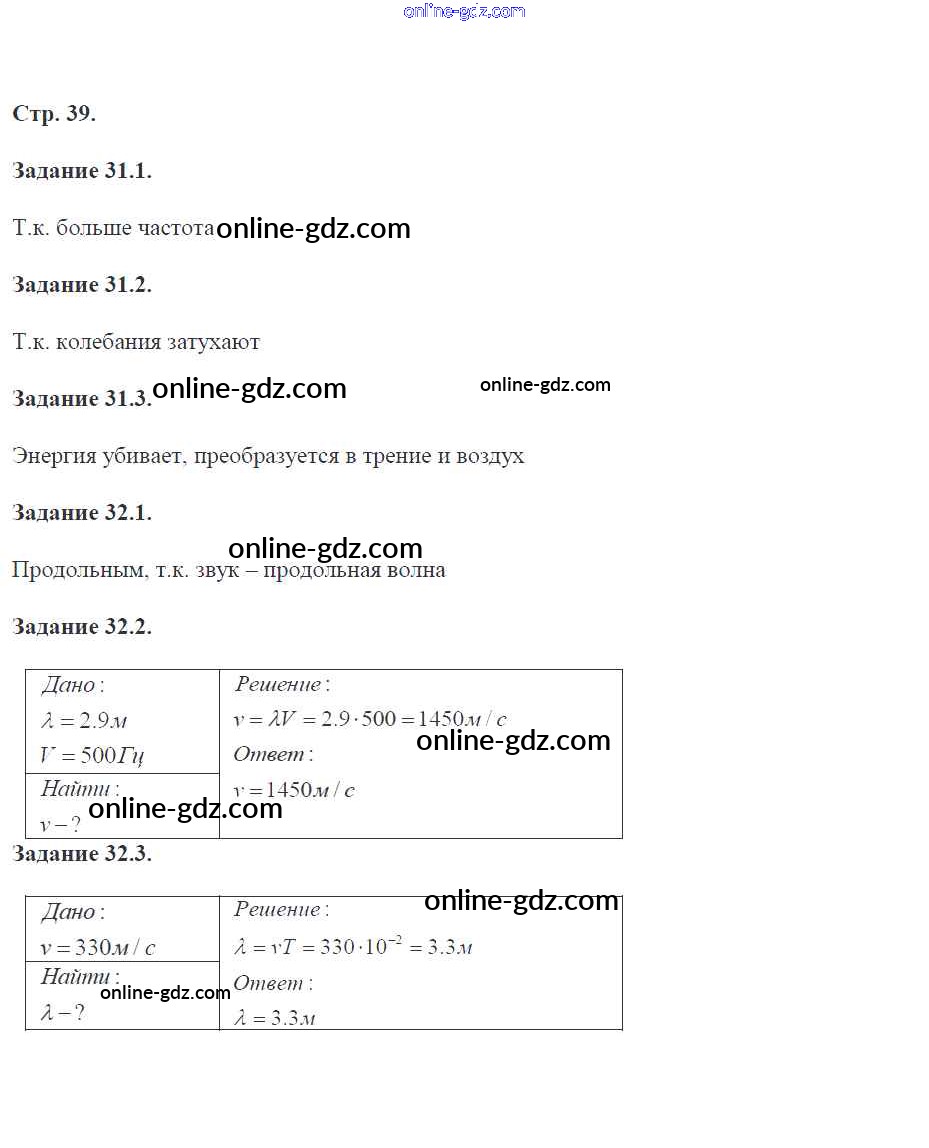 Готовые домашние задания по Физике за 9 класс Рабочая тетрадь Гутник, Власова УМК 2016 - Страницы 39