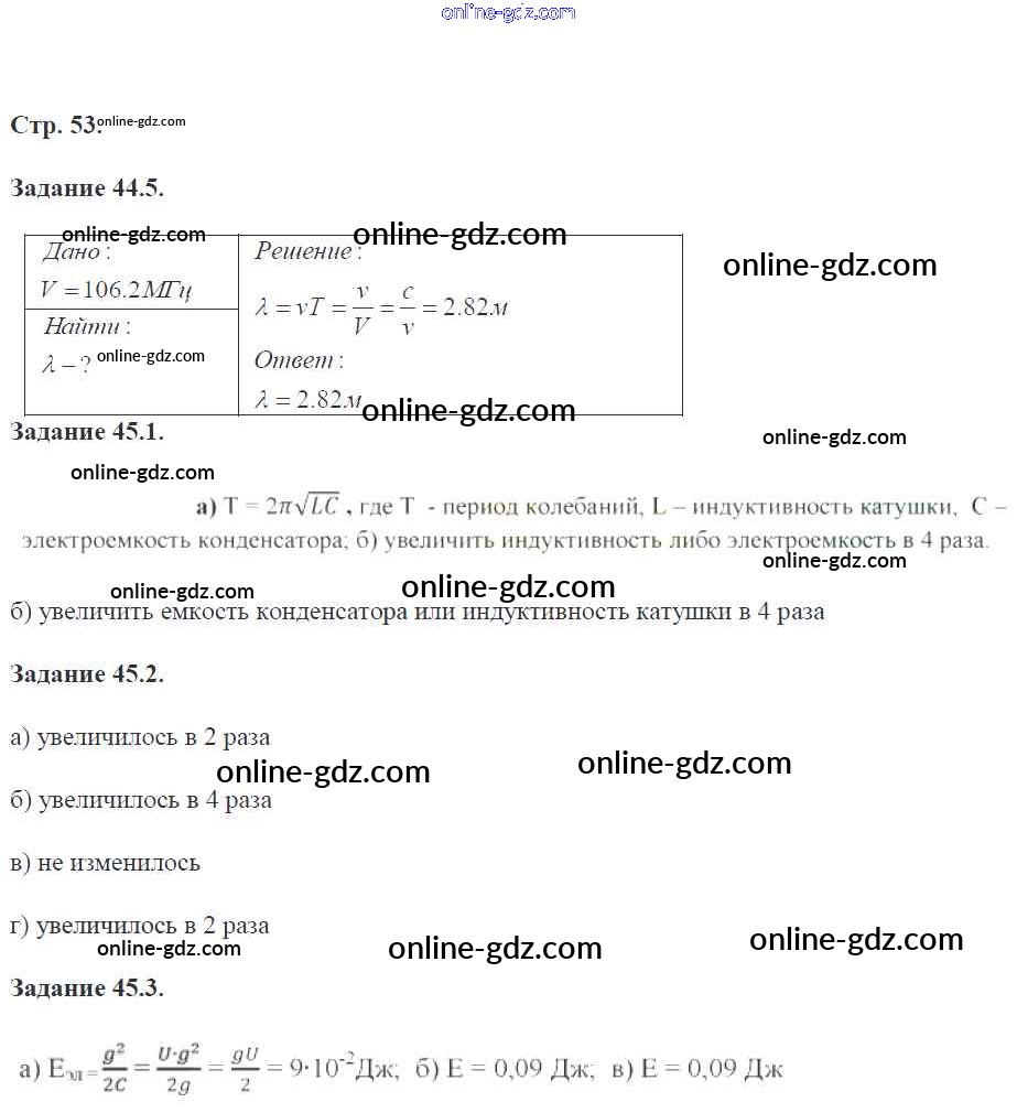 Готовые домашние задания по Физике за 9 класс Рабочая тетрадь Гутник, Власова УМК 2016 - Страницы 53