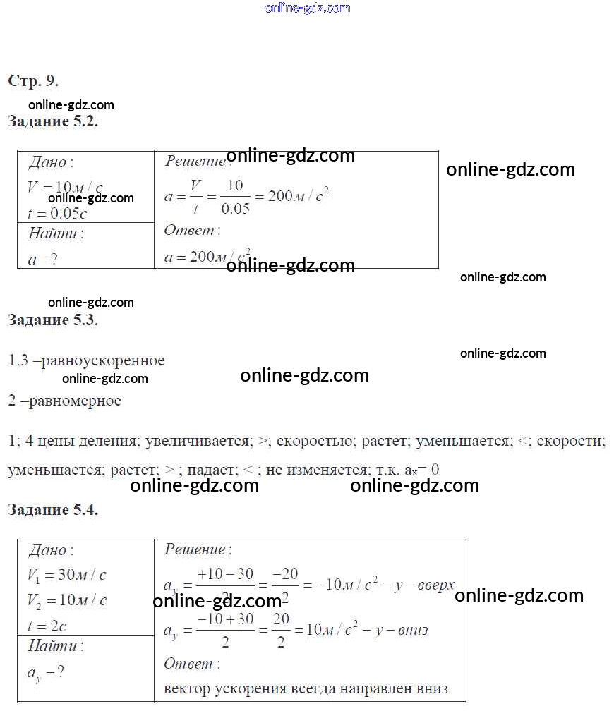Готовые домашние задания по Физике за 9 класс Рабочая тетрадь Гутник, Власова УМК 2016 - Страницы 9