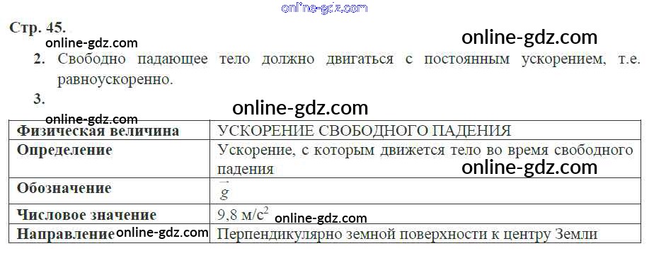 Готовые домашние задания по Физике за 9 класс Рабочая тетрадь Касьянов, Дмитриева УМК 2017 - Страницы 45