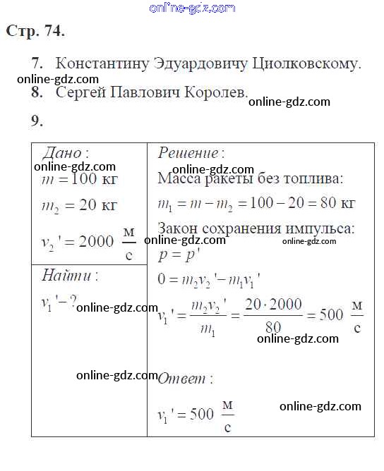 Готовые домашние задания по Физике за 9 класс Рабочая тетрадь Касьянов, Дмитриева УМК 2017 - Страницы 74