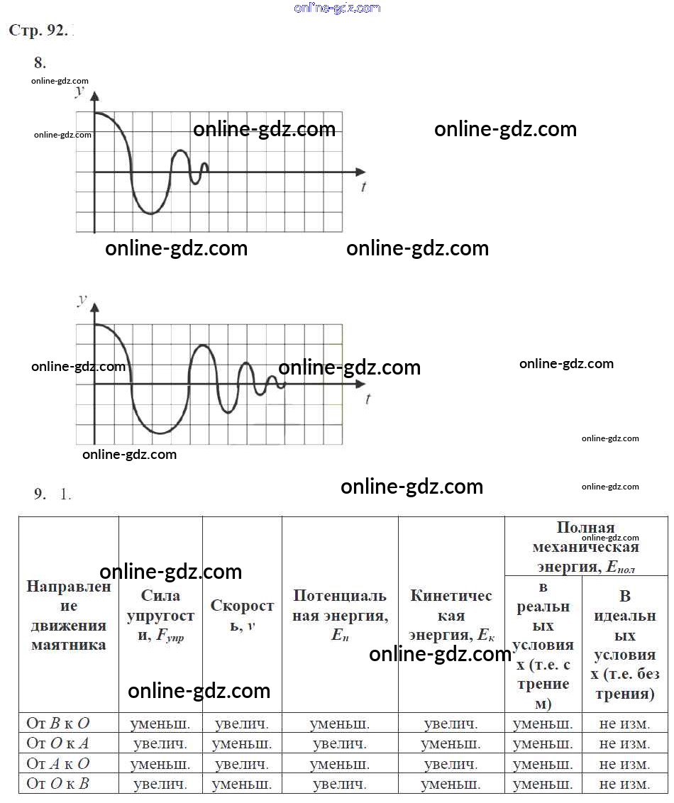 Готовые домашние задания по Физике за 9 класс Рабочая тетрадь Касьянов, Дмитриева УМК 2017 - Страницы 92