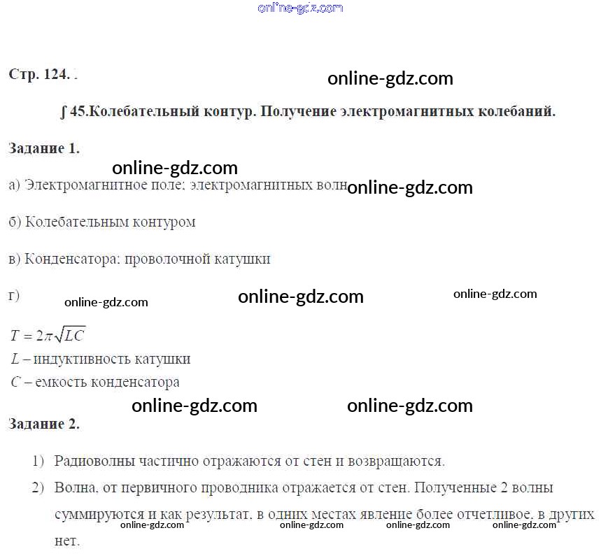 Готовые домашние задания по Физике за 9 класс Рабочая тетрадь Перышкин, Лонцова УМК 2017 - Страницы 124