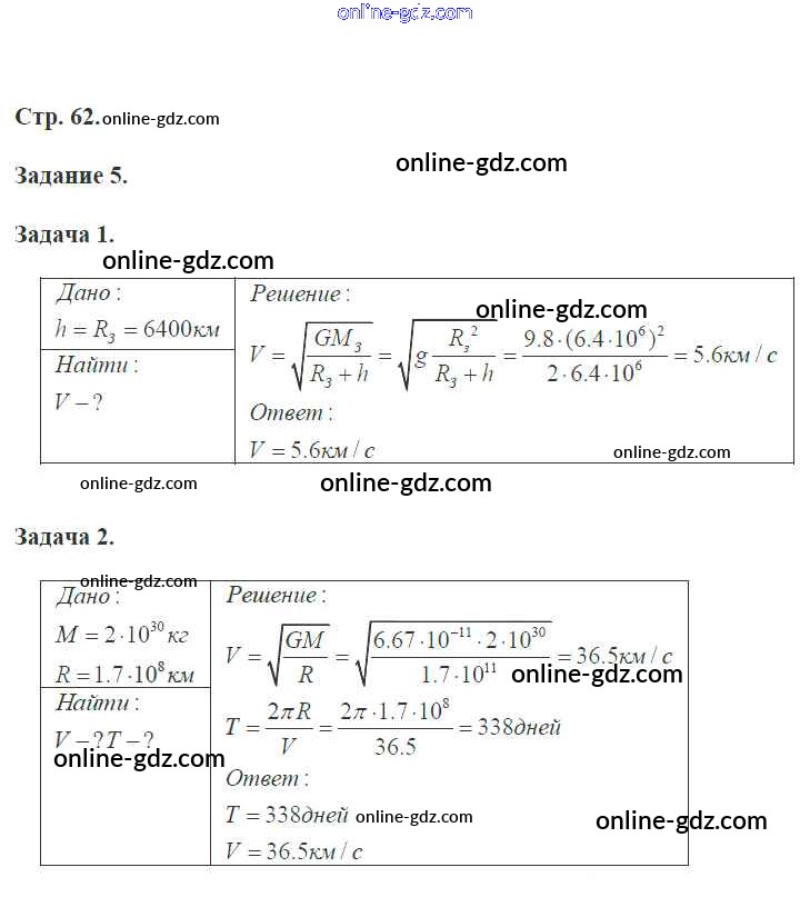 Готовые домашние задания по Физике за 9 класс Рабочая тетрадь Перышкин, Лонцова УМК 2017 - Страницы 62