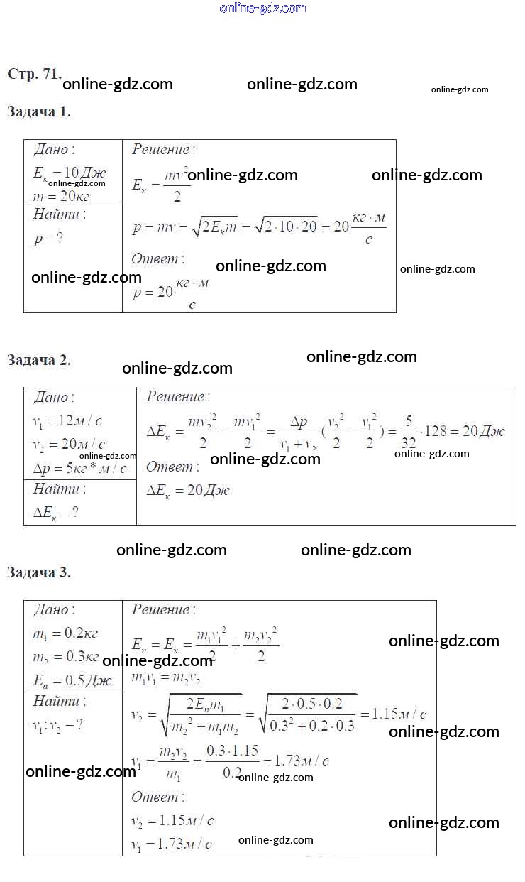 Готовые домашние задания по Физике за 9 класс Рабочая тетрадь Перышкин, Лонцова УМК 2017 - Страницы 71