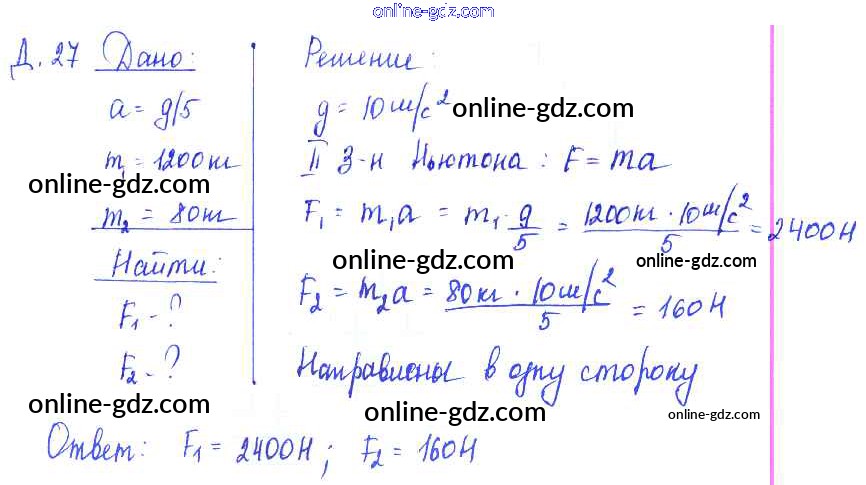 Готовые домашние задания по Физике за 7, 8, 9 класс Сборник задач Лукашик, Иванова 2011 - Дополнительные задания 27