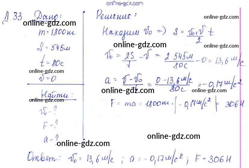 Готовые домашние задания по Физике за 7, 8, 9 класс Сборник задач Лукашик, Иванова 2011 - Дополнительные задания 33