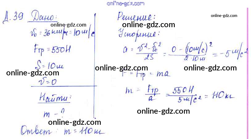 Готовые домашние задания по Физике за 7, 8, 9 класс Сборник задач Лукашик, Иванова 2011 - Дополнительные задания 39