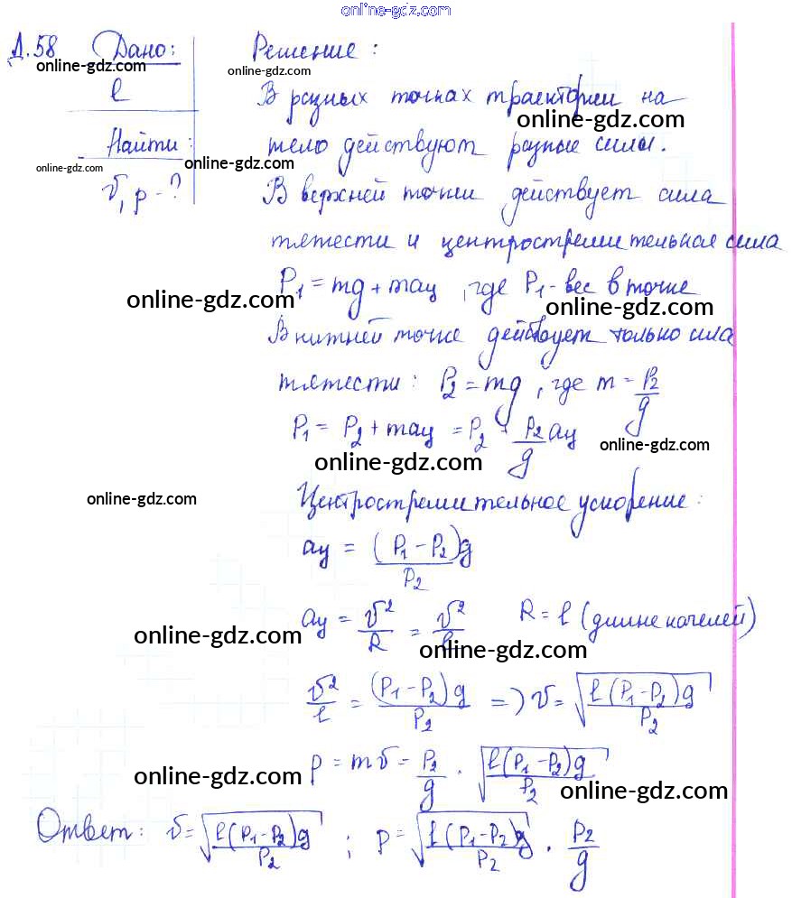 Готовые домашние задания по Физике за 7, 8, 9 класс Сборник задач Лукашик, Иванова 2011 - Дополнительные задания 58