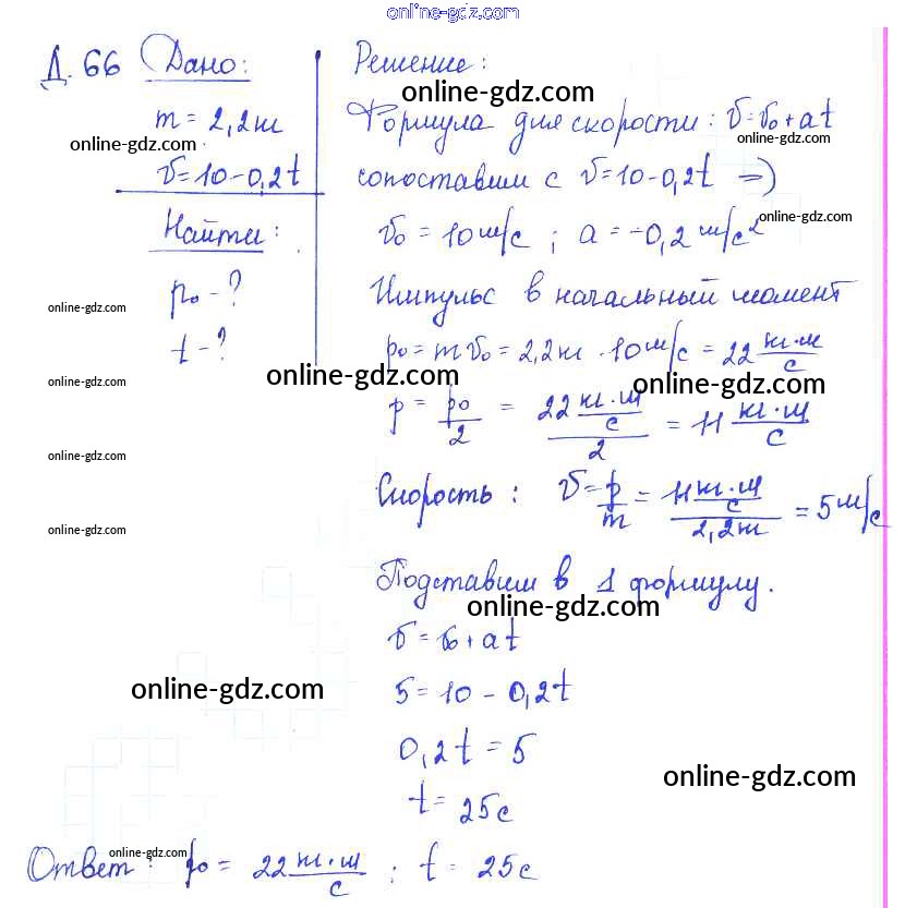 Готовые домашние задания по Физике за 7, 8, 9 класс Сборник задач Лукашик, Иванова 2011 - Дополнительные задания 66