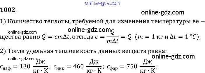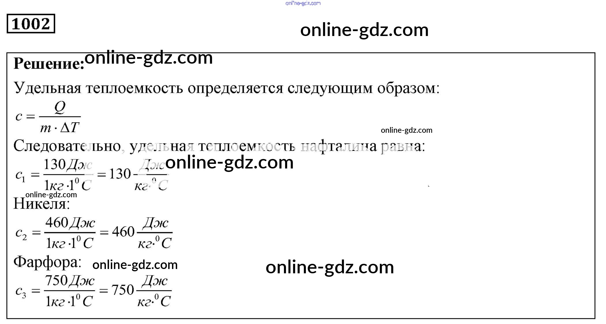 Готовые домашние задания по Физике за 7, 8, 9 класс Сборник задач Лукашик, Иванова 2011 - Задания 1002