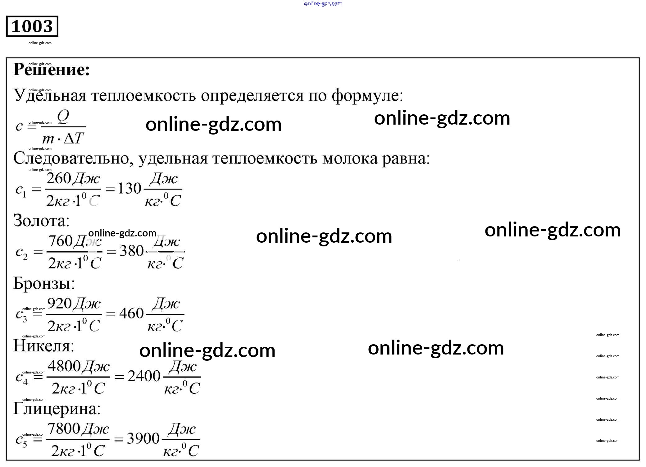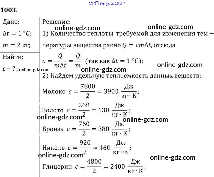 Готовые домашние задания по Физике за 7, 8, 9 класс Сборник задач Лукашик, Иванова 2011 - Задания 1003