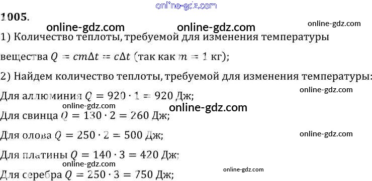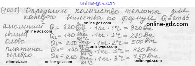 Готовые домашние задания по Физике за 7, 8, 9 класс Сборник задач Лукашик, Иванова 2011 - Задания 1005