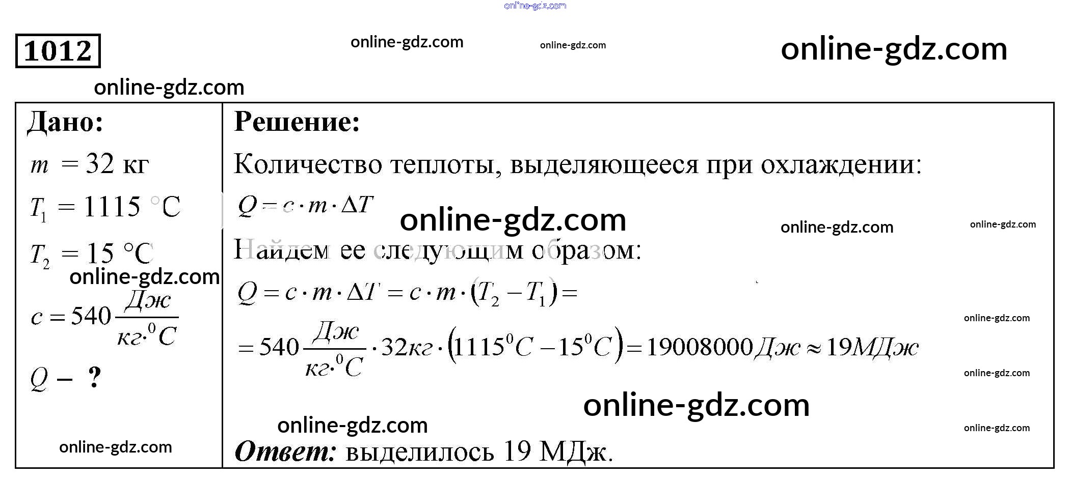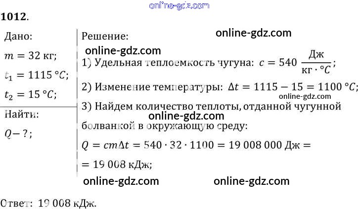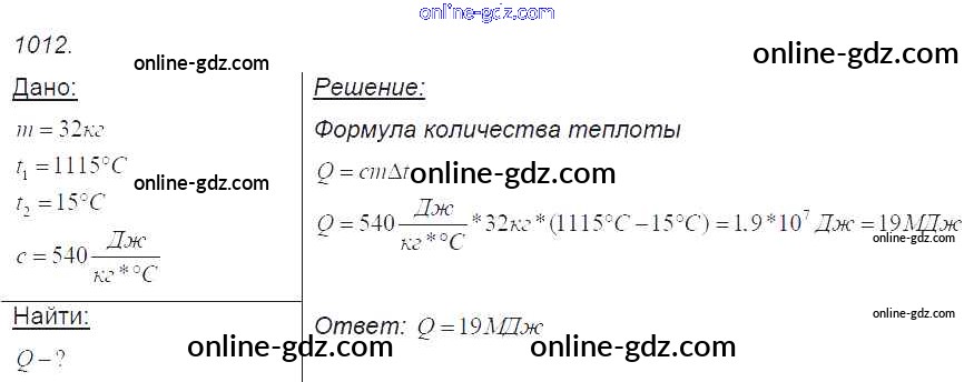 Готовые домашние задания по Физике за 7, 8, 9 класс Сборник задач Лукашик, Иванова 2011 - Задания 1012