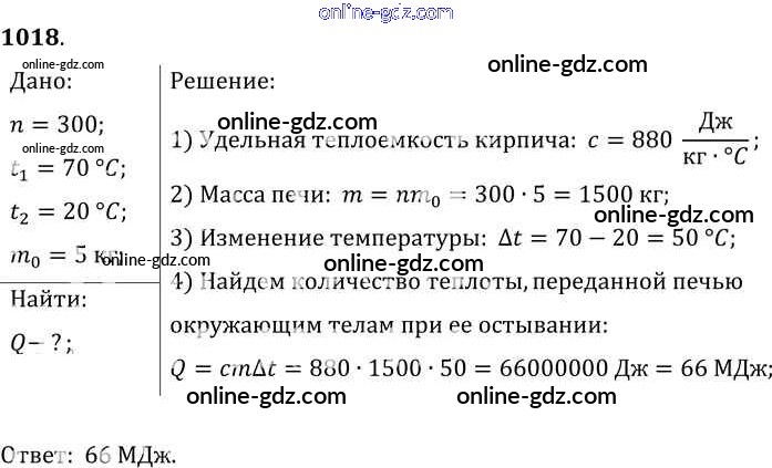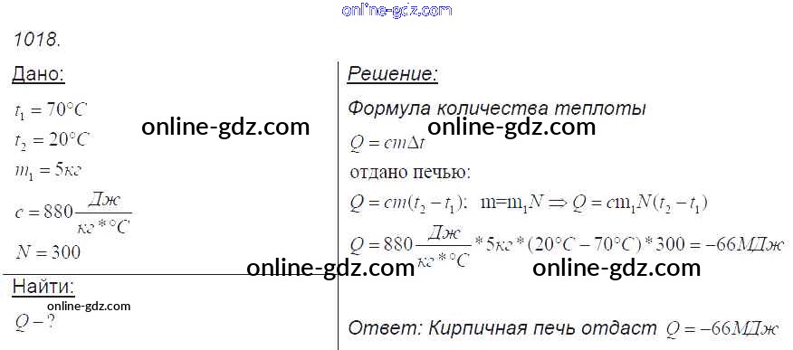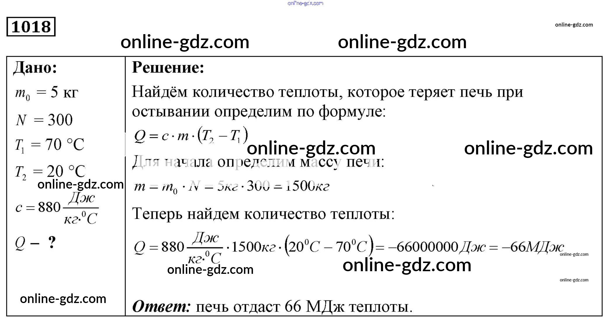 Готовые домашние задания по Физике за 7, 8, 9 класс Сборник задач Лукашик, Иванова 2011 - Задания 1018