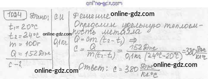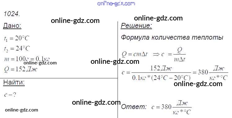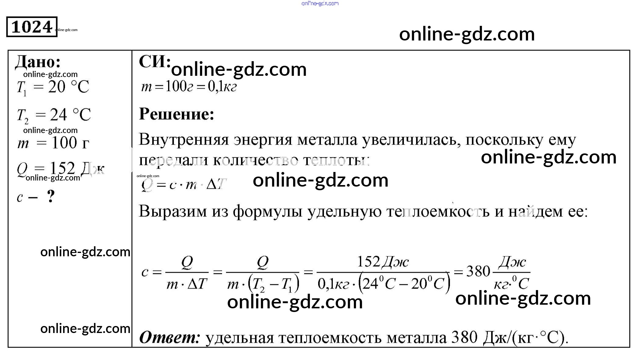 Готовые домашние задания по Физике за 7, 8, 9 класс Сборник задач Лукашик, Иванова 2011 - Задания 1024