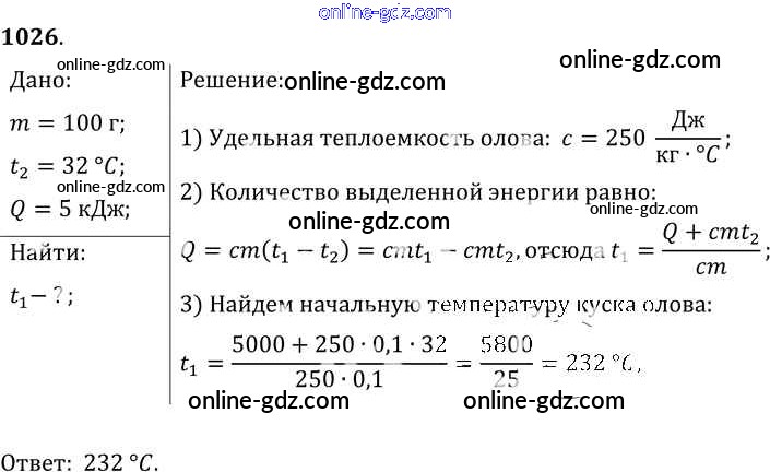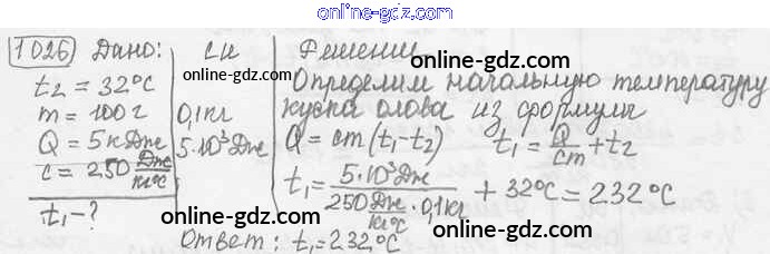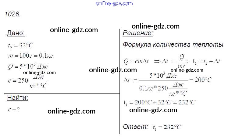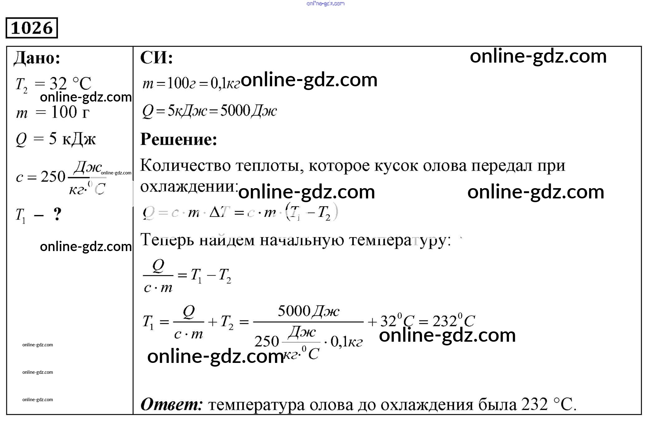 Готовые домашние задания по Физике за 7, 8, 9 класс Сборник задач Лукашик, Иванова 2011 - Задания 1026
