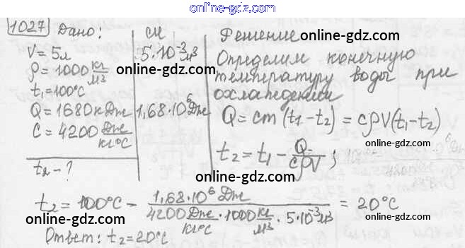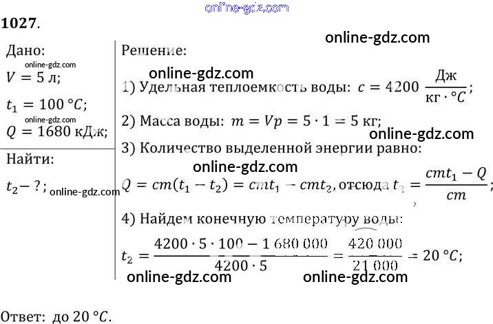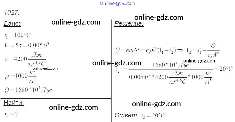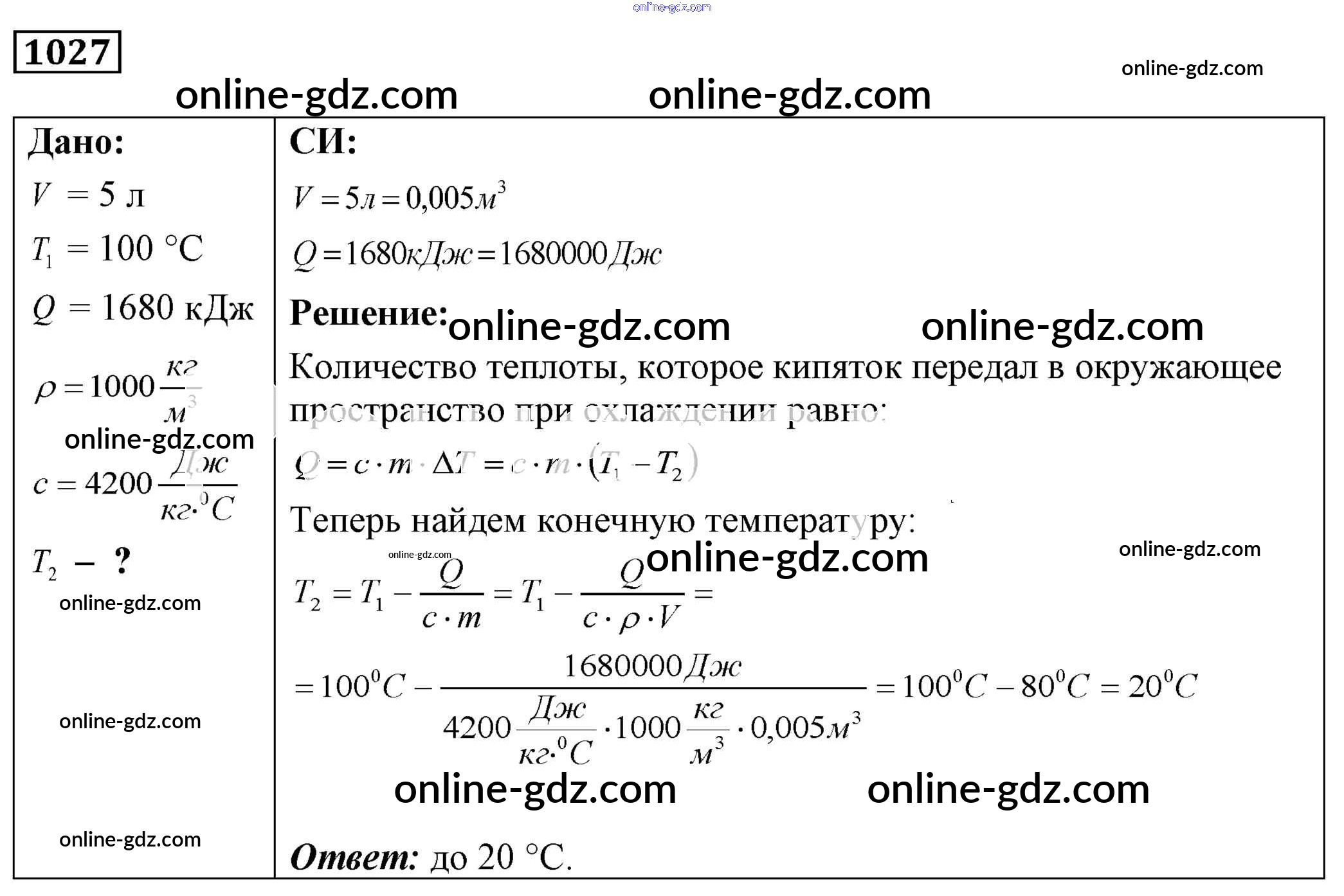 Готовые домашние задания по Физике за 7, 8, 9 класс Сборник задач Лукашик, Иванова 2011 - Задания 1027
